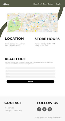As for the service page, I had based it off most spa websites I had seen. They made sure that customers are introduced to the services they offer and are able to make a online booking. What I hope to achieve in my website is to make a working form where users can actually book a timeslot but I was unable to add it in the final.